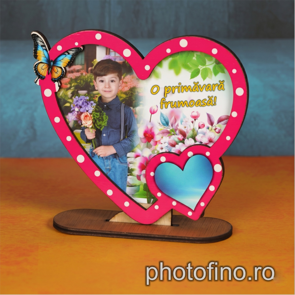 Această ramă foto personalizată, cu un design deosebit în formă de inimă, este cadoul ideal pentru a-i face o bucurie unei persoane dragi cu ocazia primăverii. Realizată din materiale durabile, cu o finisare impecabilă, această ramă va aduce o notă de căldură și veselie în orice încăpere. Poate fi personalizată cu o fotografie dragă și cu un text la alegere, devenind un suvenir unic și prețios.